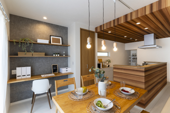 キッチンからリビング全体を見渡せる間取りになっています。